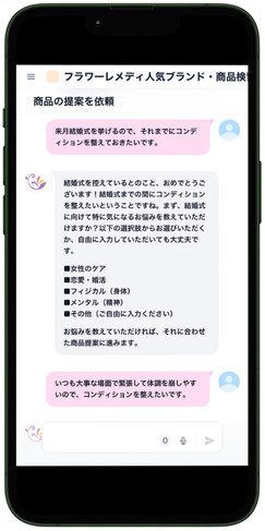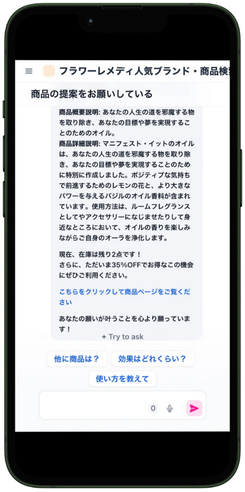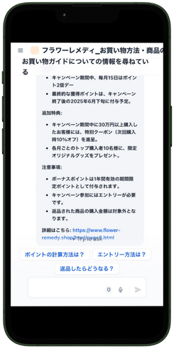 一般的なチャットボットでは、セッションが切れると会話履歴が消去されるため、お客様は再訪時に同じ情報を何度も入力する必要がありました。 GPT-INCBOTは違います。お客様を識別できるため、セッションが切れた後でも会話履歴は消えません。お客様は、再訪時に以前のやり取りからスムーズに会話を再開でき、毎回同じ質問をする手間が省け、ストレスなく快適なショッピング体験をお楽しみいただけます。 「まるで昔からの知り合いと話しているみたい」とのお声もいただいております。